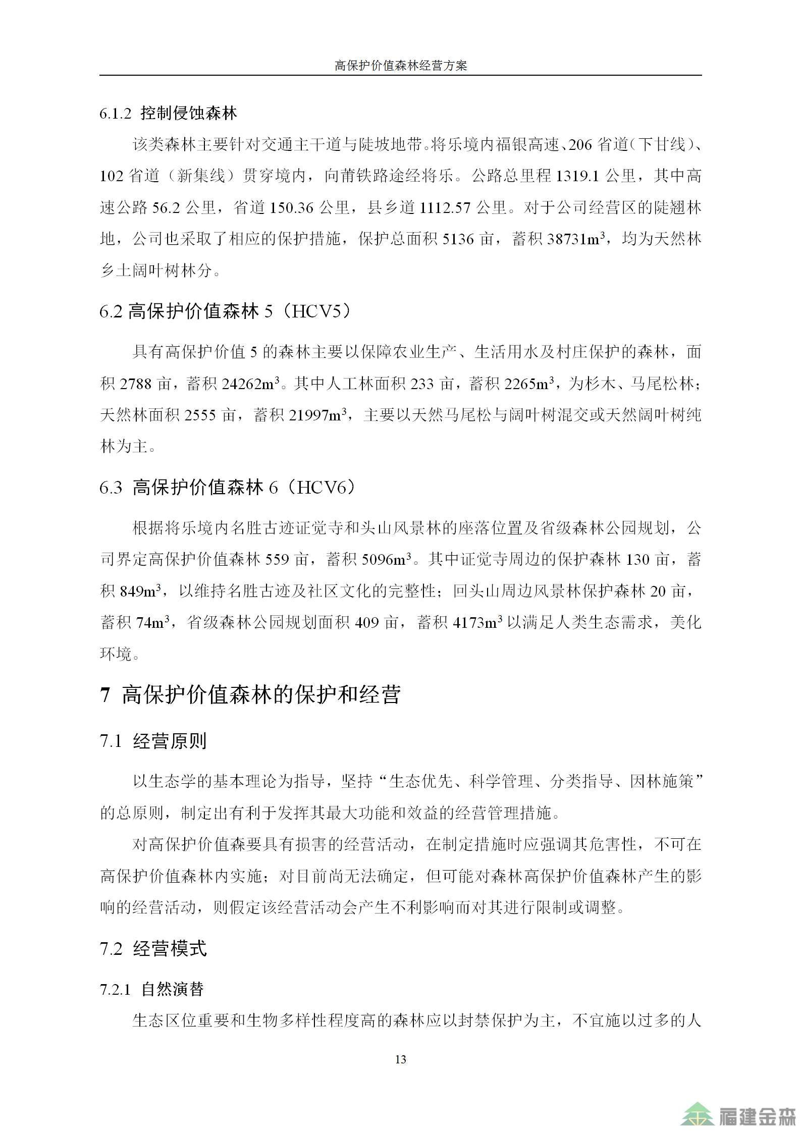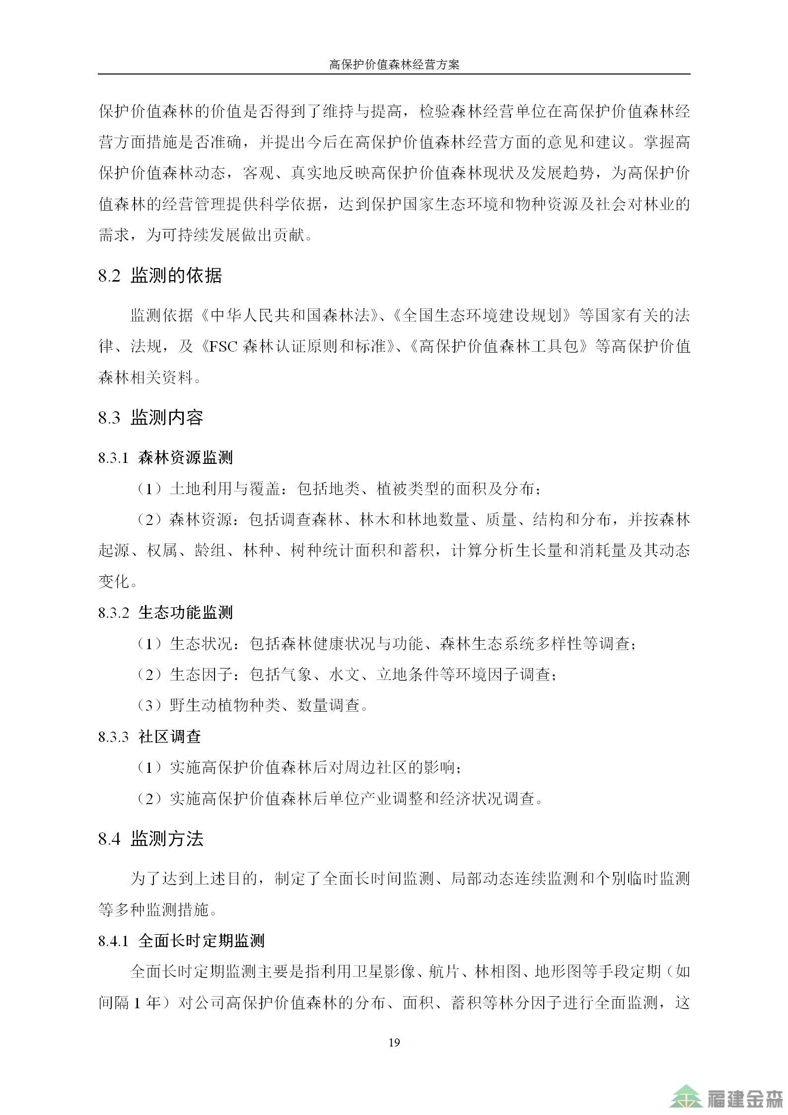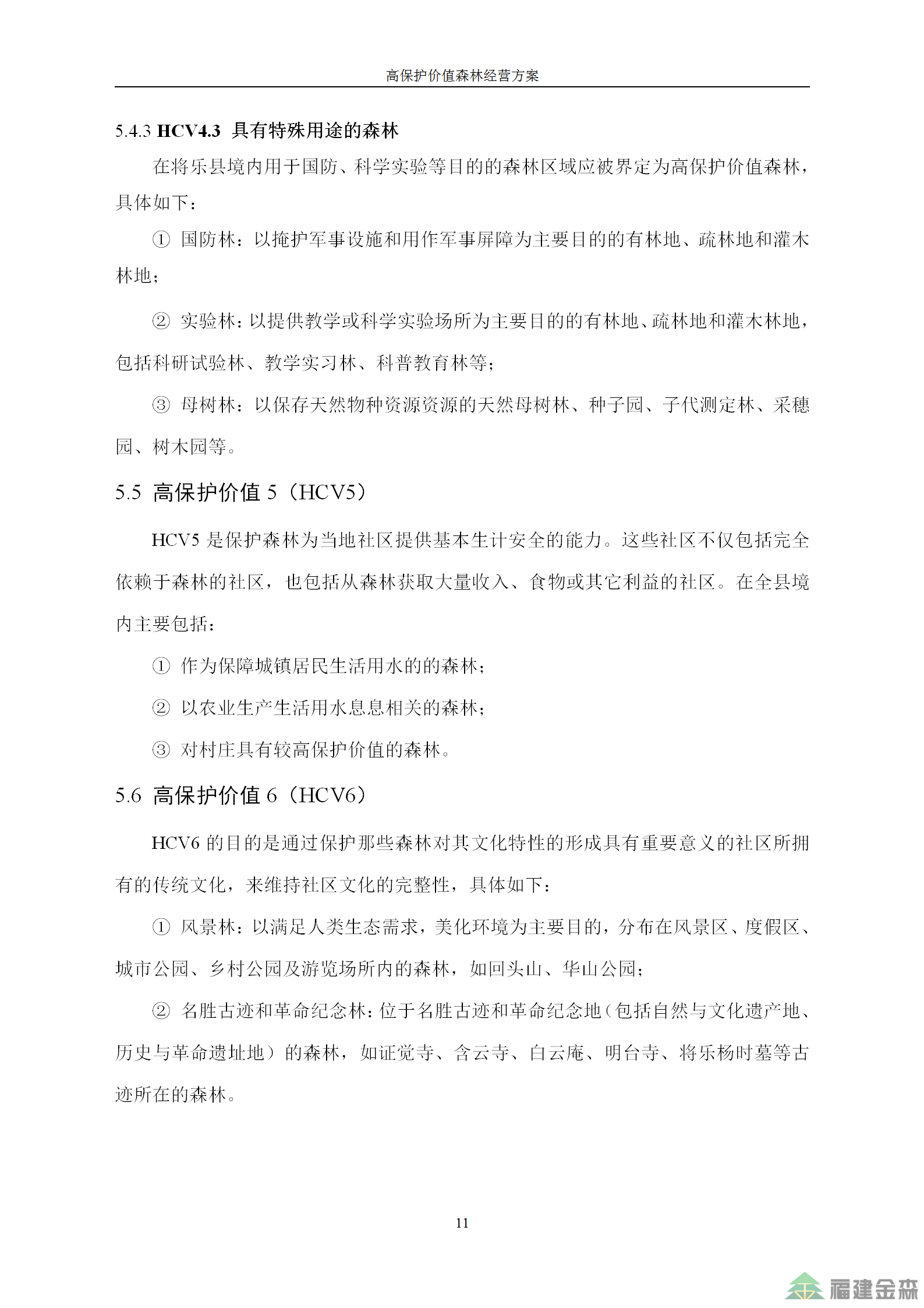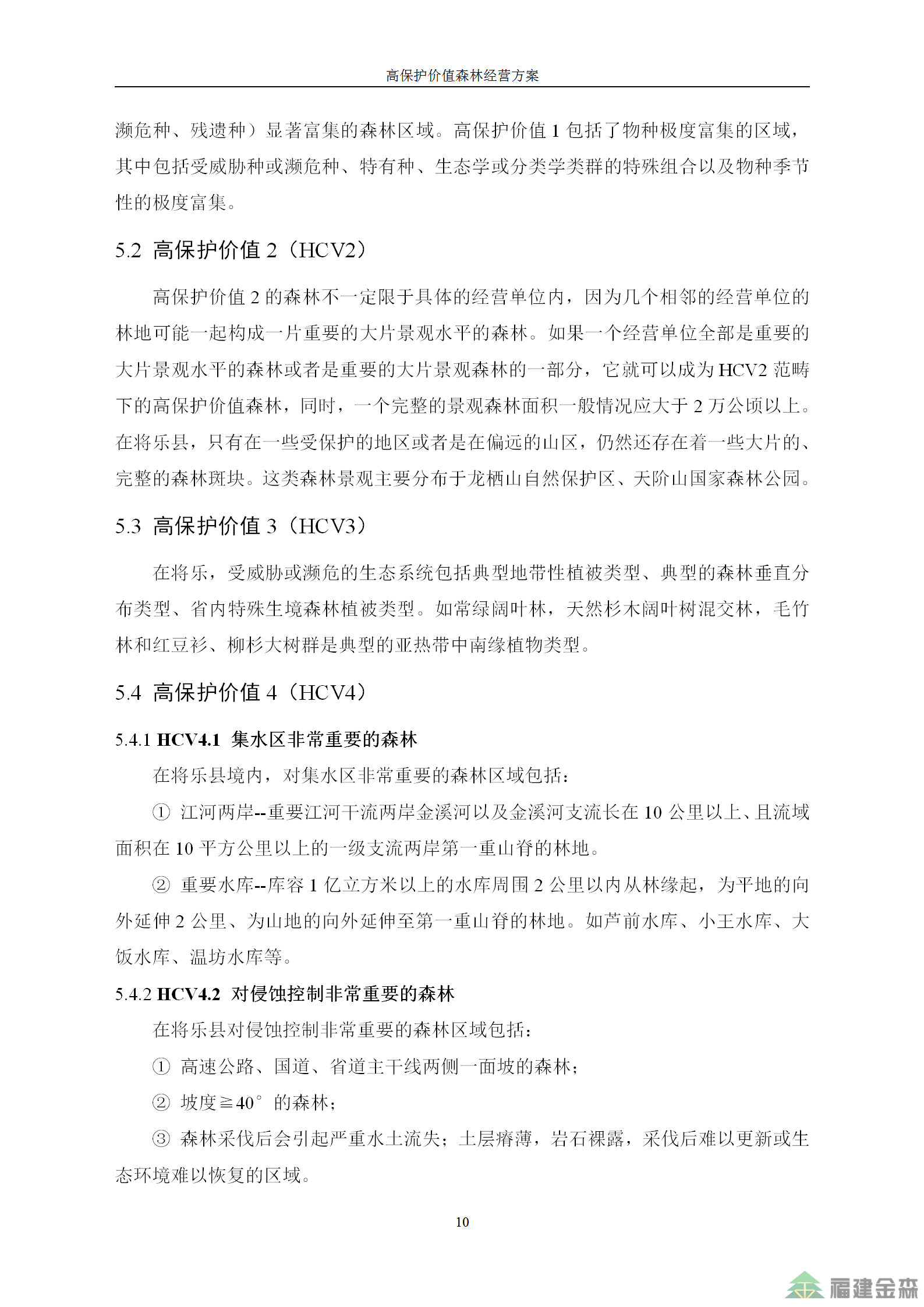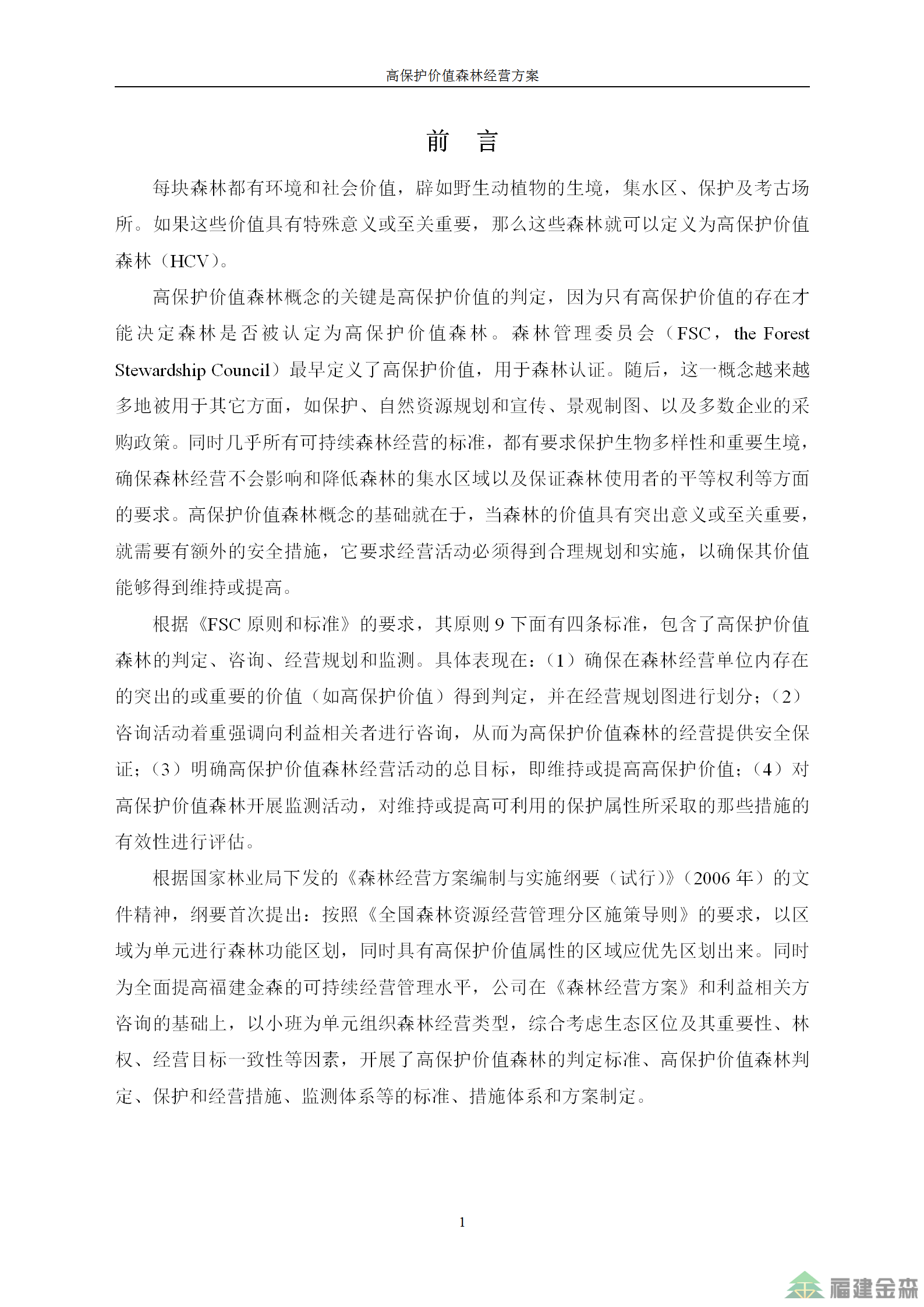 福建金森林業(yè)股份有限公司高保護(hù)價值森林經(jīng)營方案