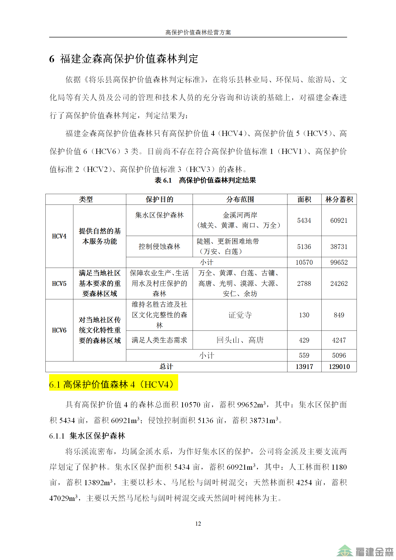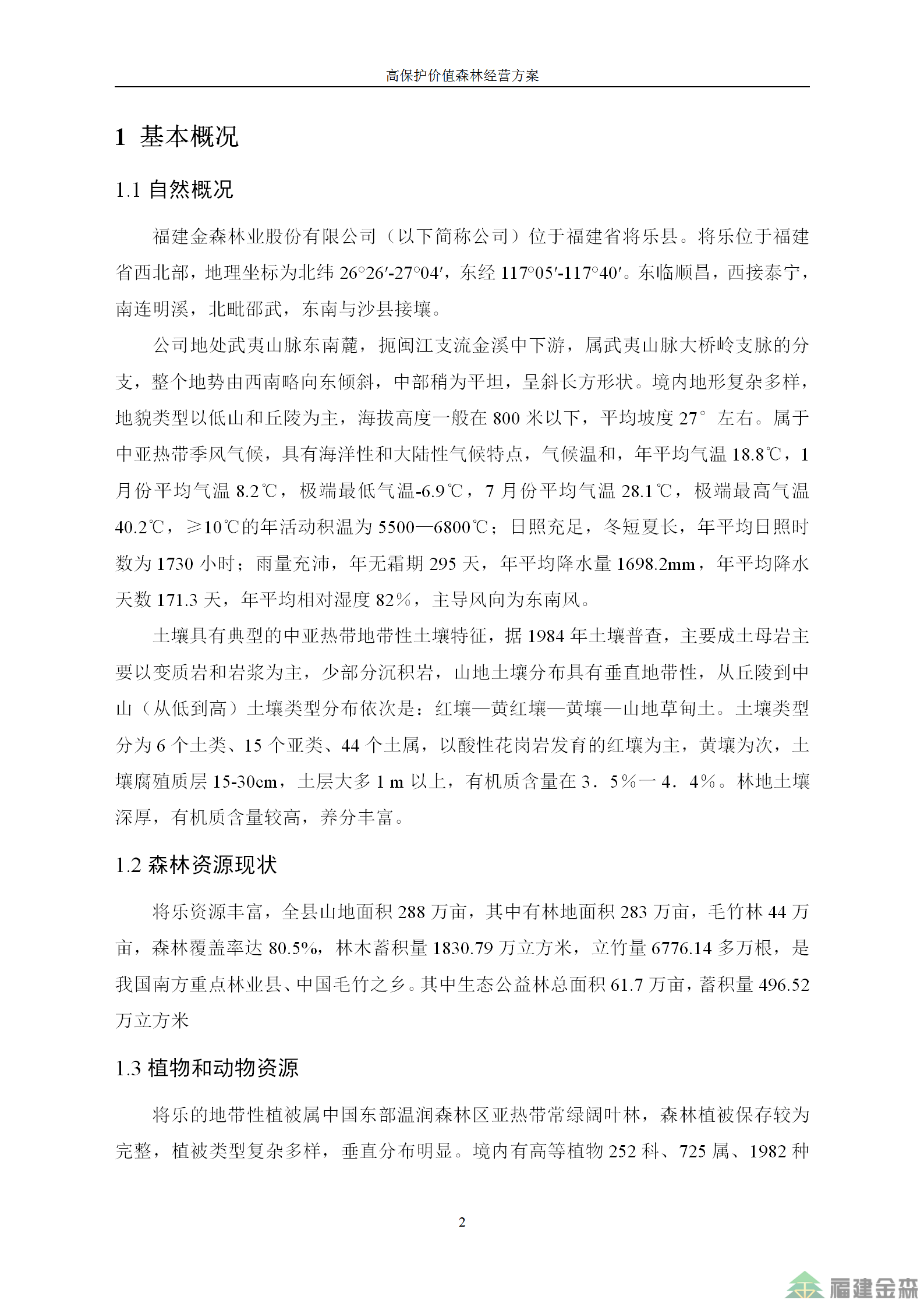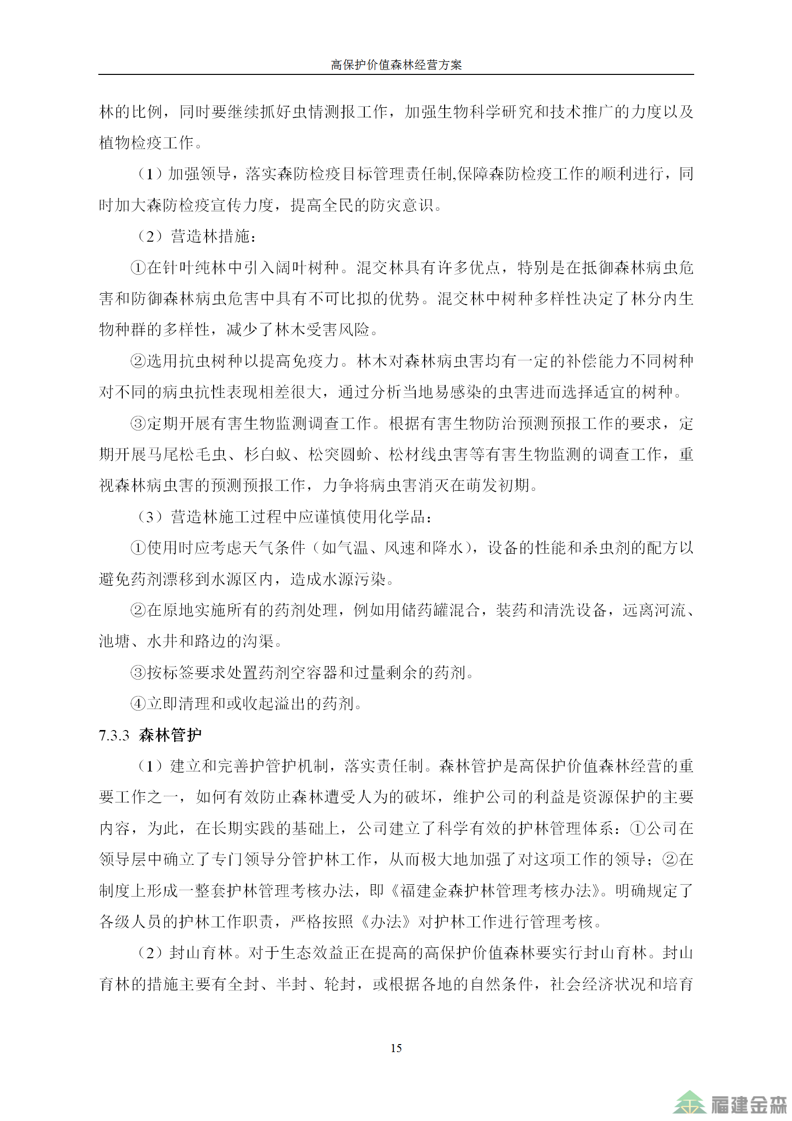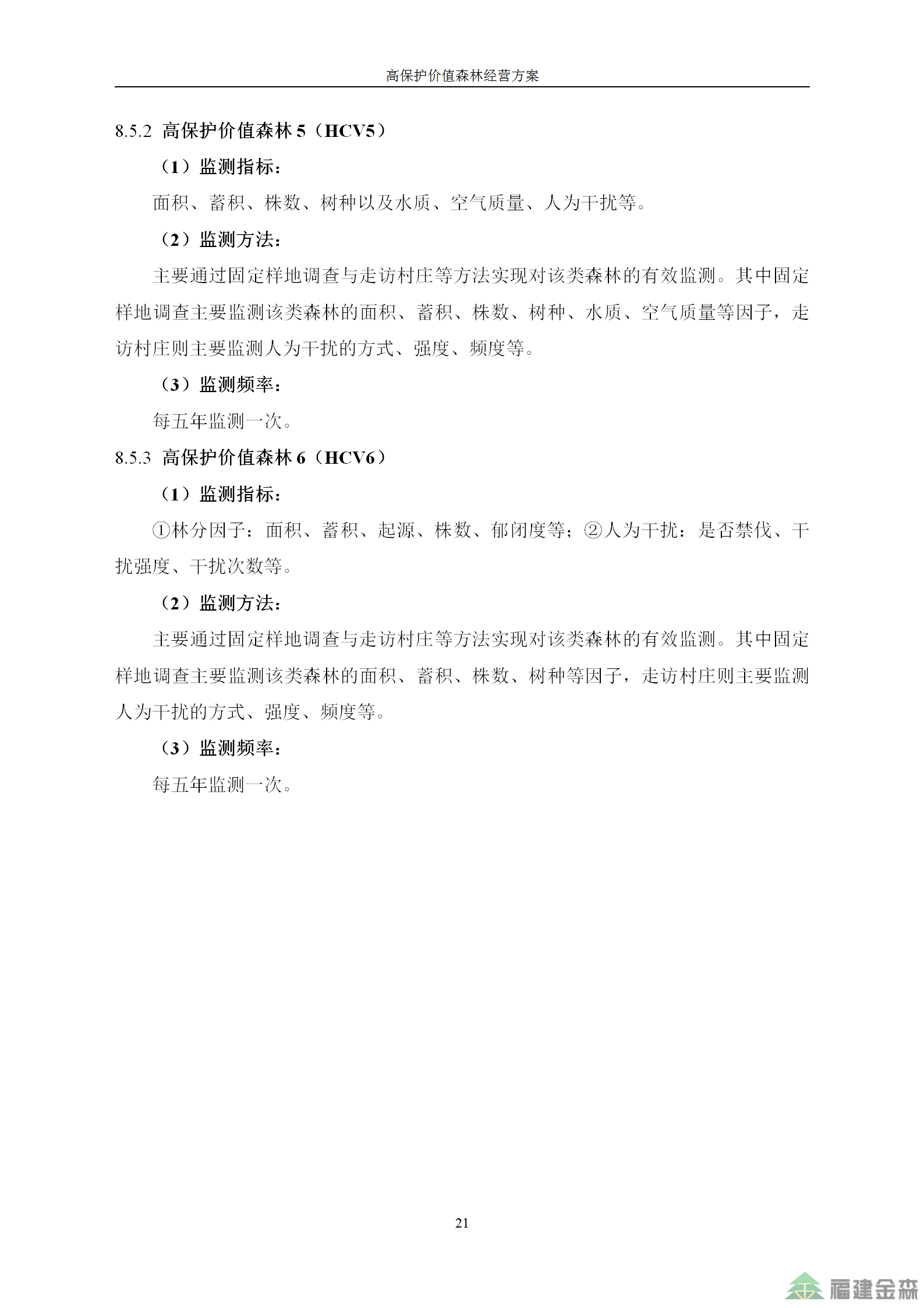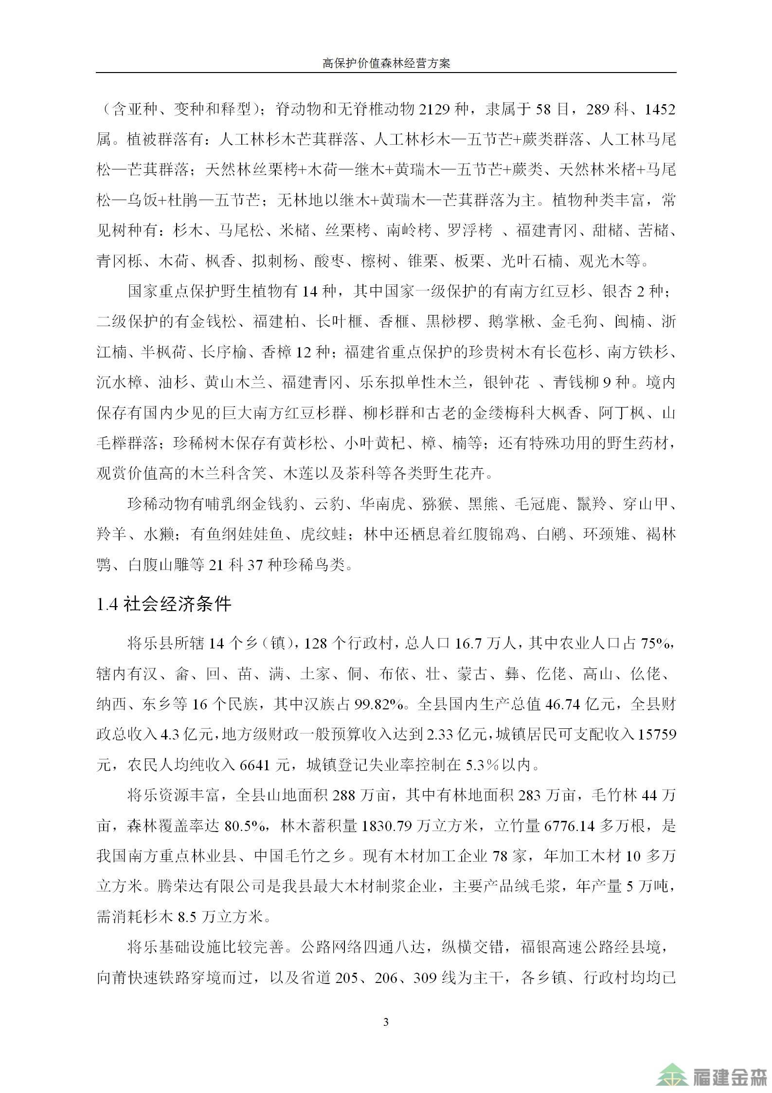 福建金森林業(yè)股份有限公司高保護(hù)價值森林經(jīng)營方案